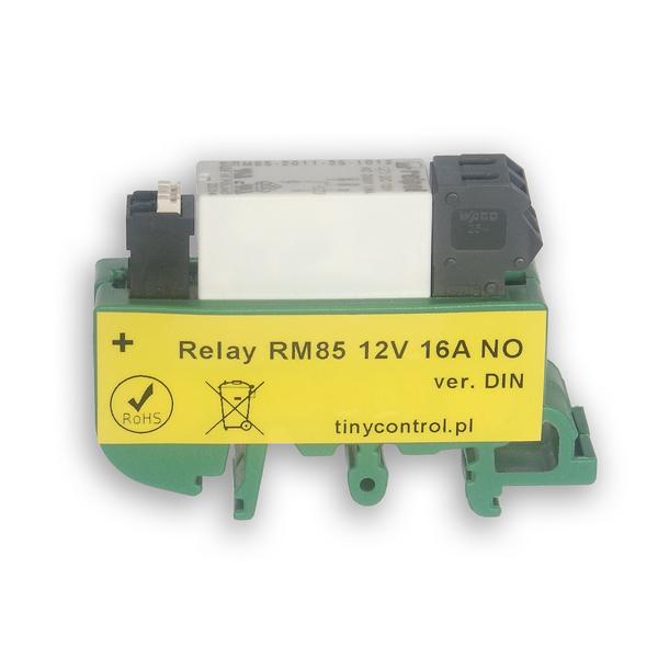 Płytka z przekaźnikiem RM85 16 A, cewka 12 V lub 24 V, z uchwytem na szynę DIN