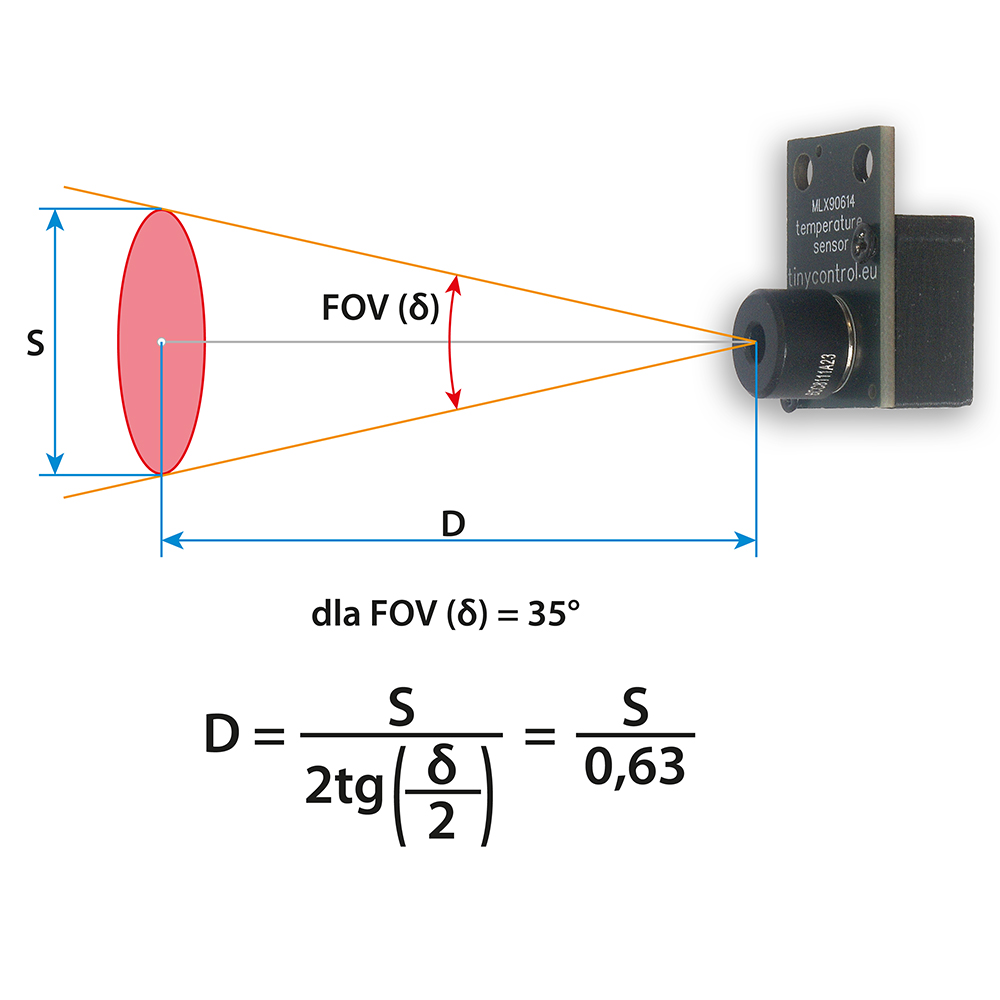 Obraz poniżej przedstawia, jak wyliczyć odległość od mierzonego przedmiotu.